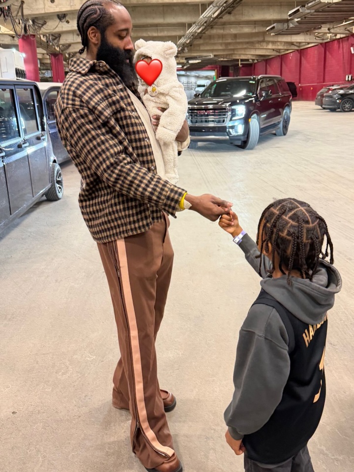 爱游戏官网主页-超级奶爸!女友晒哈登抱着孩子和自己的孩子拉手指